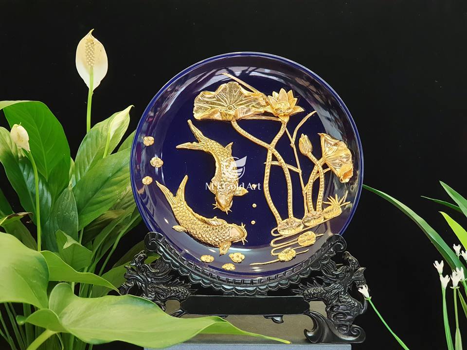Đĩa ngọc cá chép hoa sen dát vàng