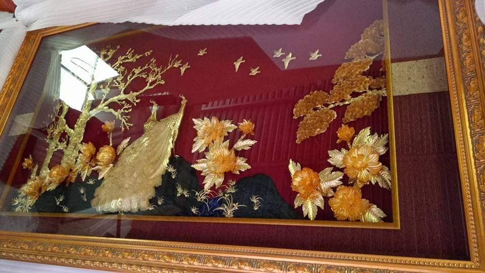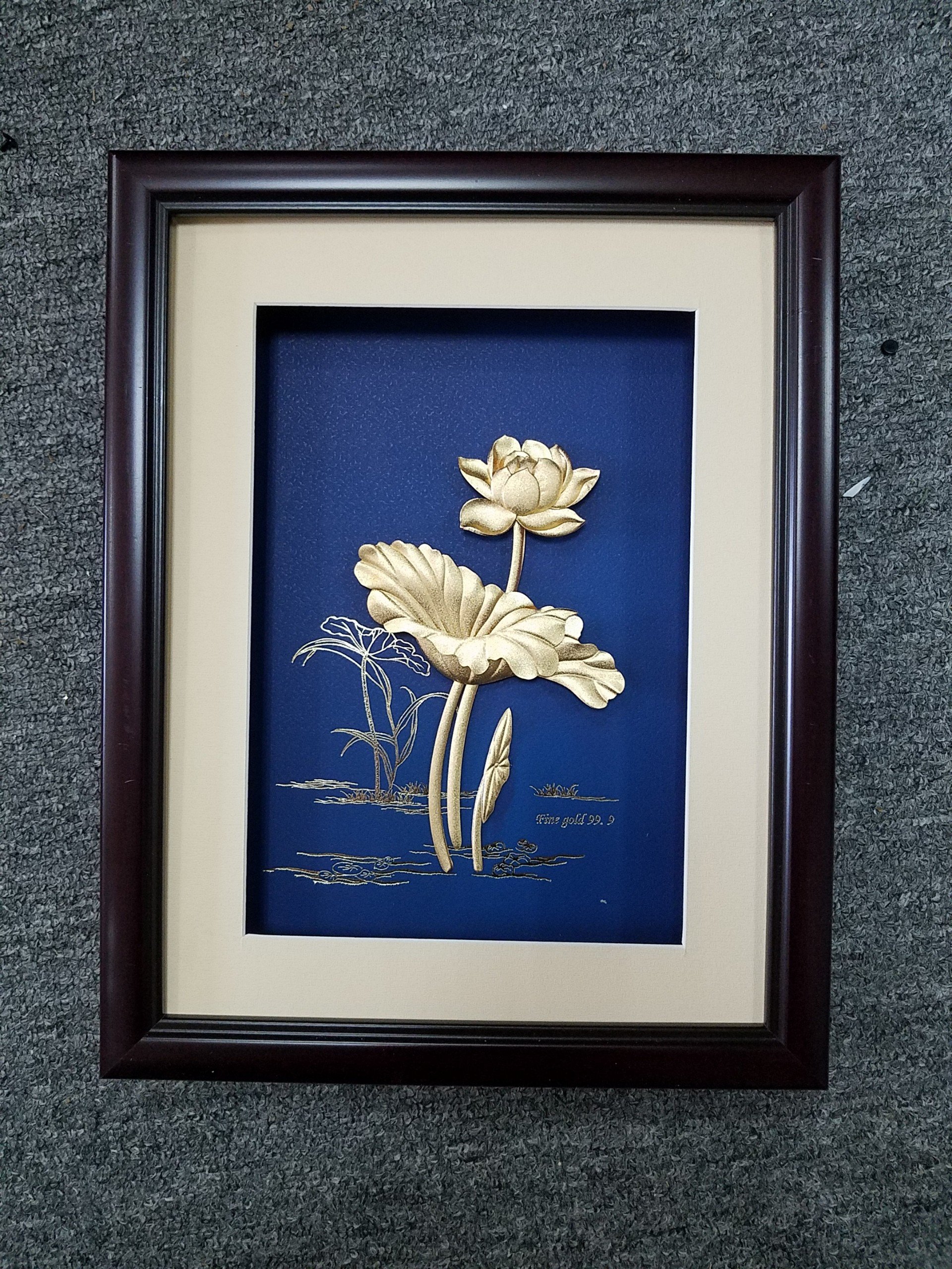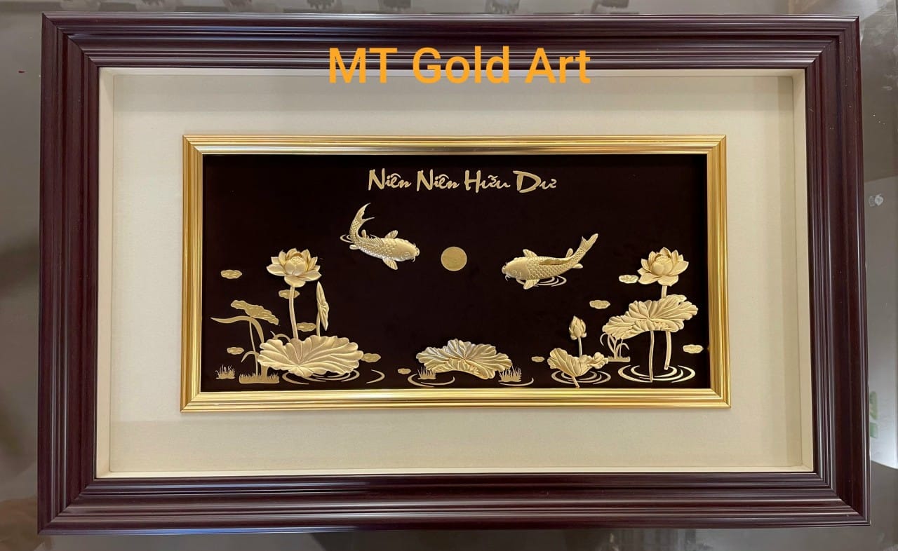 Tranh treo tường khá phổ biến hiện nay . Một không gian được kết hợp kèm tranh sẽ giúp cho không gian đó trở nên có điểm nhấn , không bị trống khi nhìn vào . Thông thường sẽ là những mẫu tranh làm bằng vải , hay sơn dầu … nhưng hiện nay , tranh dát vàng được ưa chuộng vì độ sang trọng , chân thật tới 90% khi nhìn vào . Đây là món quà khá hợp lý khi nghĩ tới nên tặng quà gì cho sếp !