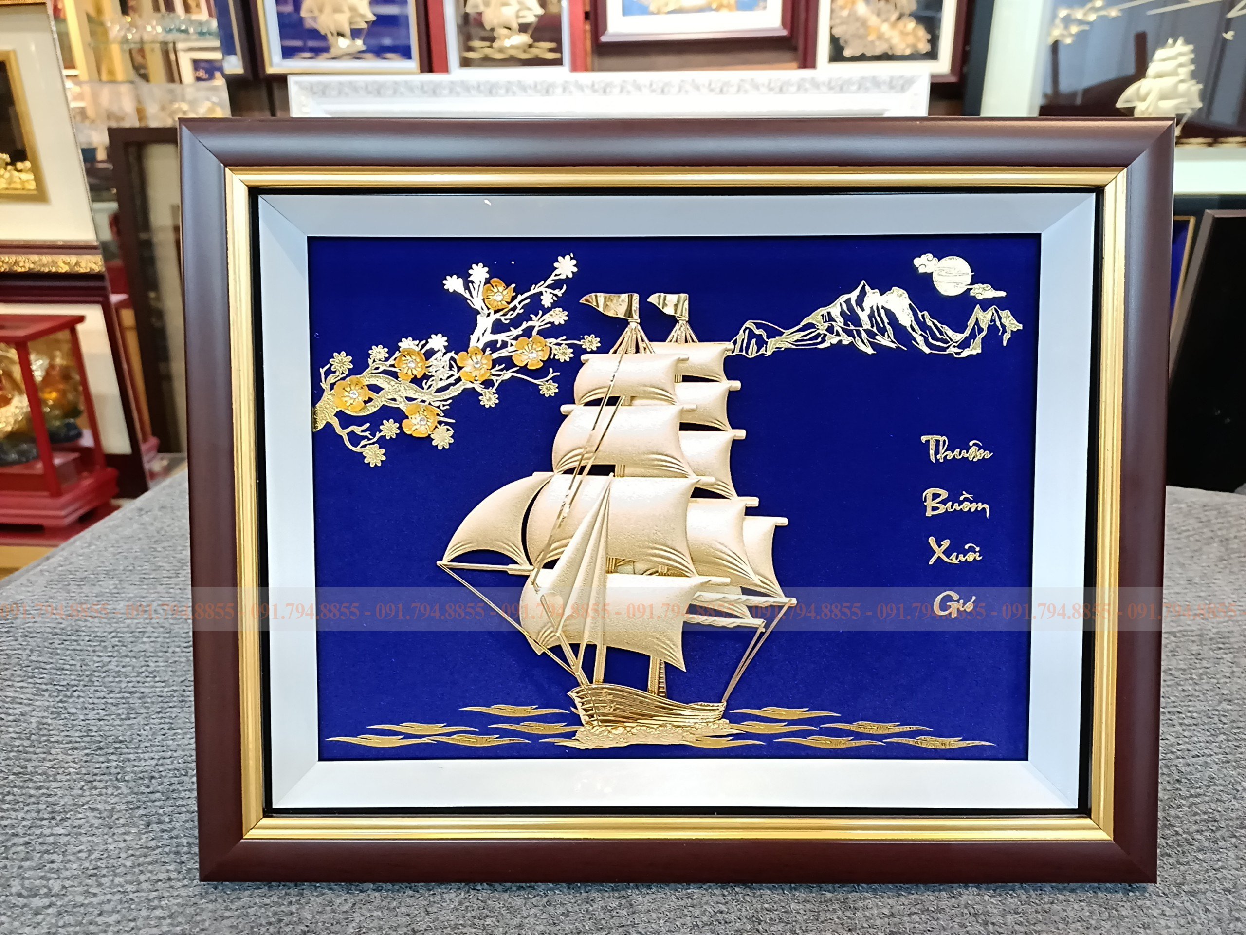 TRANH ĐÔI THUYỀN VÀNG 24K